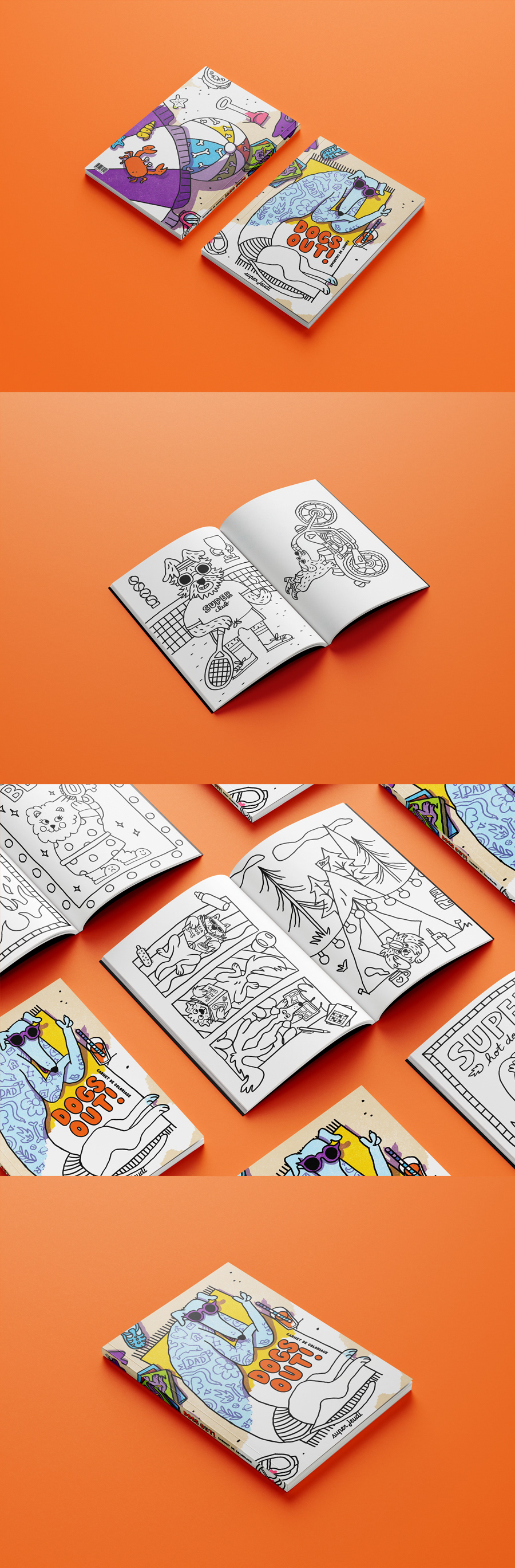 Carnet de coloriage avec 42 illustrations fun de toutous. Objet réalisé pour le marché "Les chiens au jardin" organisé par le magazine BÂTARD en septembre 2024.