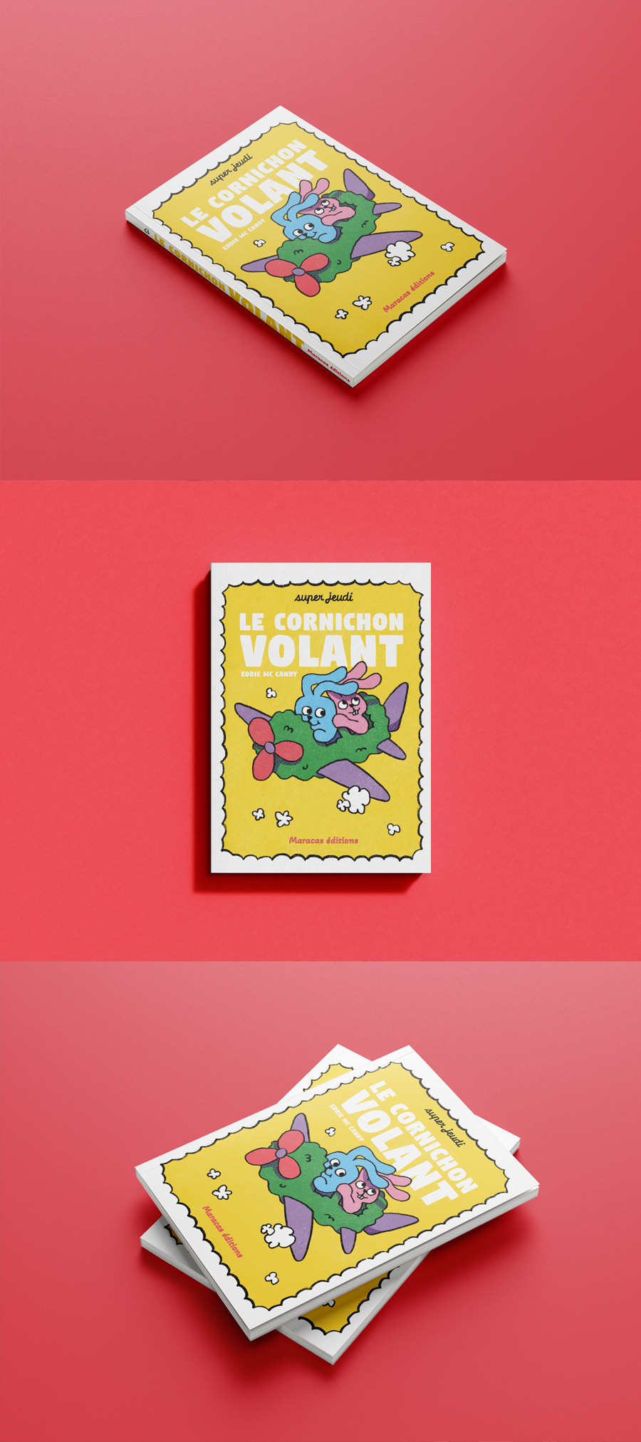 Un projet personnel d'illustration pour une couverture de livre. L'histoire de deux petits lapins qui voyage dans un cornichon volant.