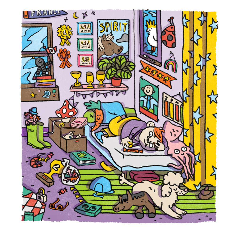 Trouve tous les mots qui commencent par la lettre C dans la chambre d'Hugo !